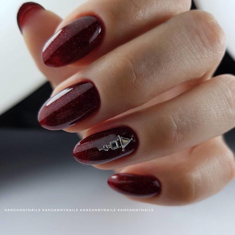 El color plata amb un vernís gel del forat de l'arrel fa que la paleta s'assembli a un got de Bordeus. Enriquir la manicura de vins amb un disseny amb elements de decoració d’estil diferent. Manicura el color de Marsala amb un disseny en forma d’ornament, utilitzant l’acabat amb cinta escocella amb un patró interessant. Les ungles mat de borgoña s’assemblen al vellut, de manera que la manicura de casament de Marsala és tan aristocràtica.