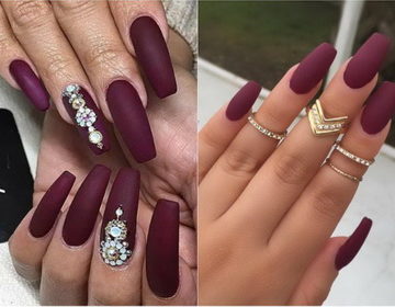 A les dones i dissenyadores de moda els agradava la noble tonalitat del vi, ja que semblava estar saturat de la calor de l’estiu i l’aroma de raïm. No és estrany que una manicura de color Marsala (foto, disseny a la col·lecció) sigui exigent i encantada. Trieu una manicura Marsala adequada per vosaltres mateixos, una selecció de fotos us ajudarà en això. La manicura de Borgonya amb vi decorarà les mans tant en la vida quotidiana com per a celebracions.