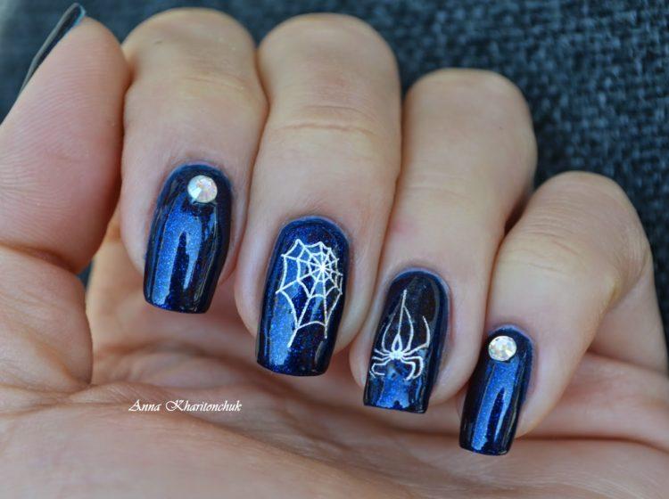 El disseny de la teranyina a les ungles, la fotografia de la que veieu, requereix algunes habilitats. Però al final, el disseny d’ungles amb teranyina sembla molt bonic i inusual. A més, aquesta manicura es pot decorar amb pedres de pedreria o fins i tot amb una aranya.