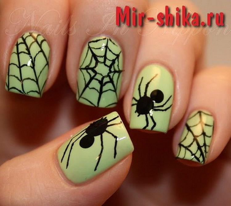 Per cert, la manicura amb una aranya tampoc és infreqüent. L’aranya s’acostuma a pintar amb pintura especial a un dels dits. La teranyina a les ungles, el disseny que es mostra a continuació, pot no ser adequada si es treballa en institucions serioses o es convida a un esdeveniment important.