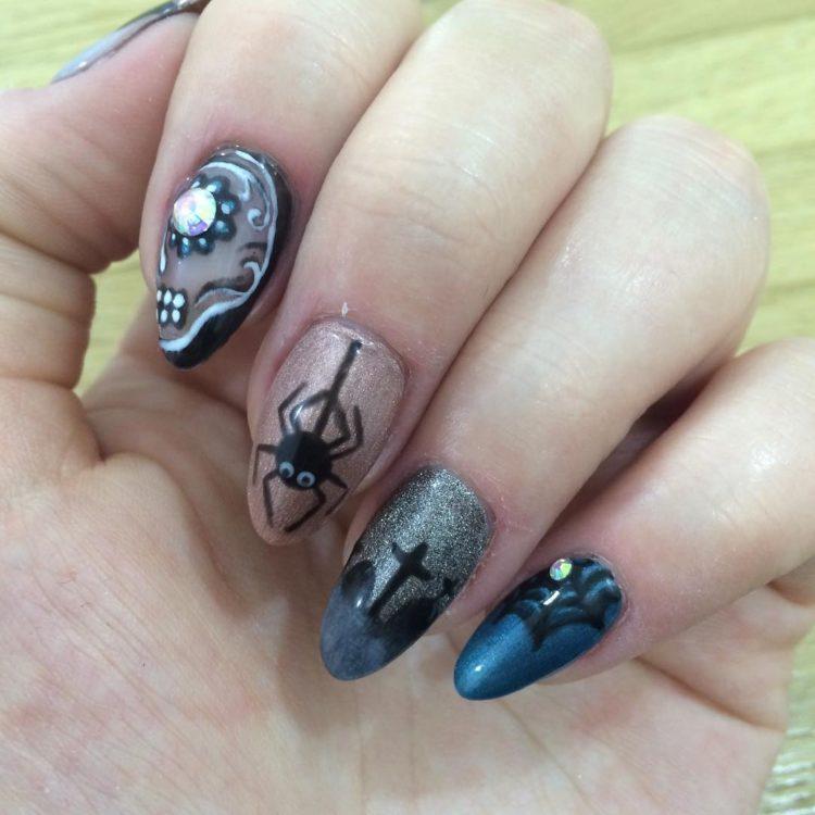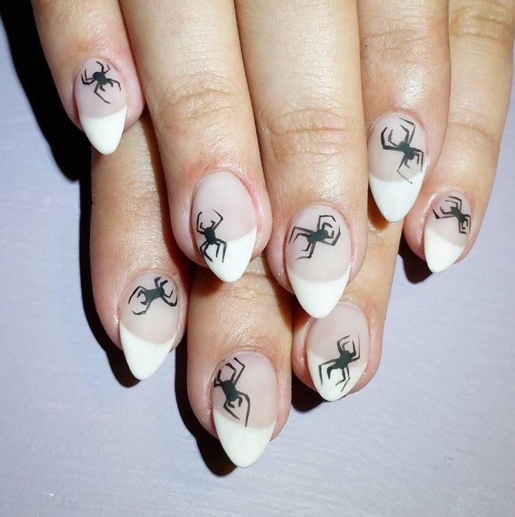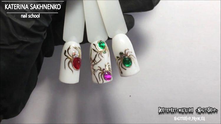 Per cert, la manicura amb una aranya tampoc és infreqüent. L’aranya s’acostuma a pintar amb pintura especial a un dels dits. La teranyina a les ungles, el disseny que es mostra a continuació, pot no ser adequada si es treballa en institucions serioses o es convida a un esdeveniment important.