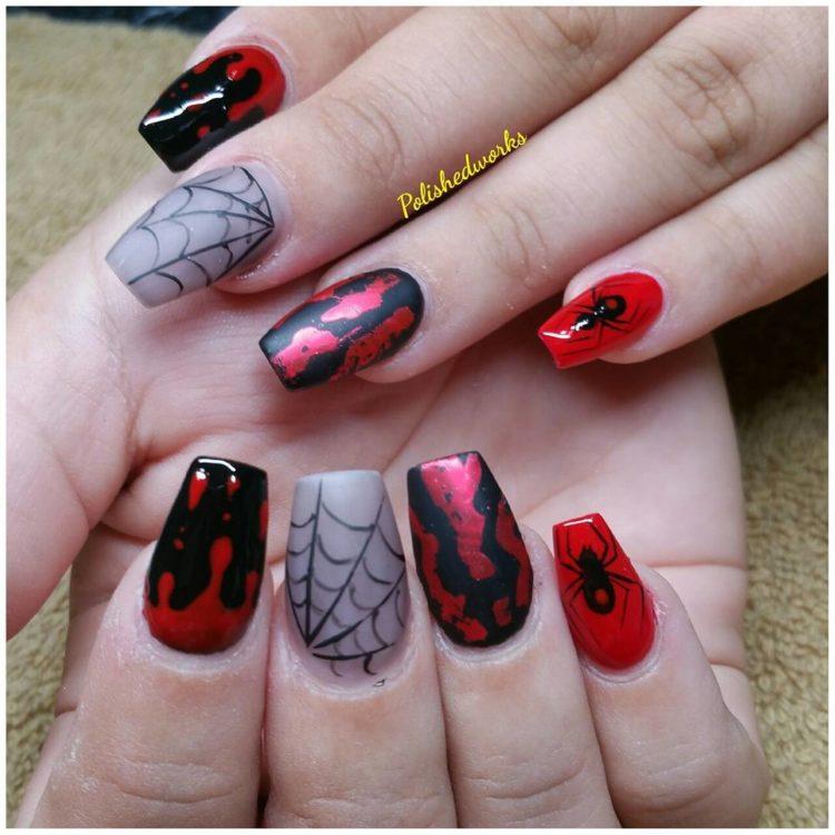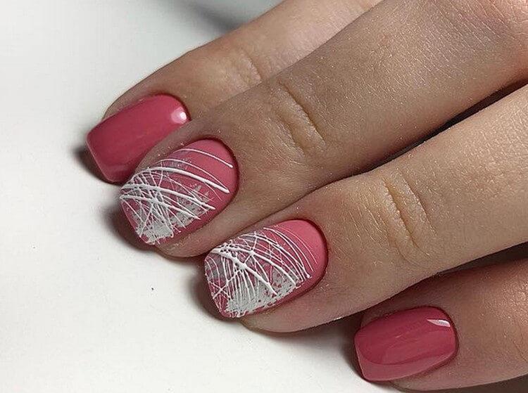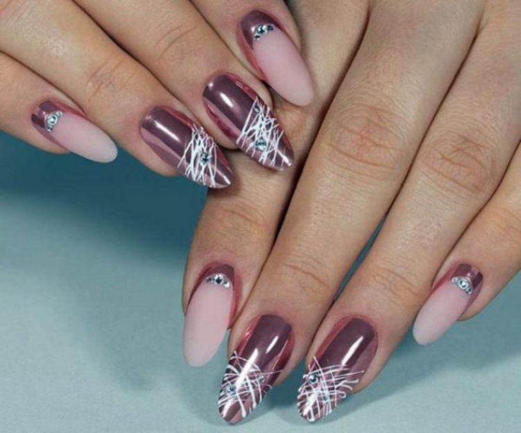 El disseny de la teranyina a les ungles, la fotografia de la que veieu, requereix algunes habilitats. Però al final, el disseny d’ungles amb teranyina sembla molt bonic i inusual. A més, aquesta manicura es pot decorar amb pedres de pedreria o fins i tot amb una aranya.
