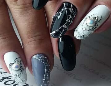 Així doncs, una manicura amb teranyina per al disseny pot no ser adequada per a qualsevol codi de vestimenta, però sembla molt interessant a les ungles. El disseny d’ungles d’una teranyina, les fotografies de les quals podeu veure, es fa de diverses maneres i per tant pot tenir un aspecte diferent. Però sempre cal provar alguna cosa nova i buscar noves idees, encara que es tracti de manicura ordinària. No tingueu por d’assumir riscos i experimenteu.