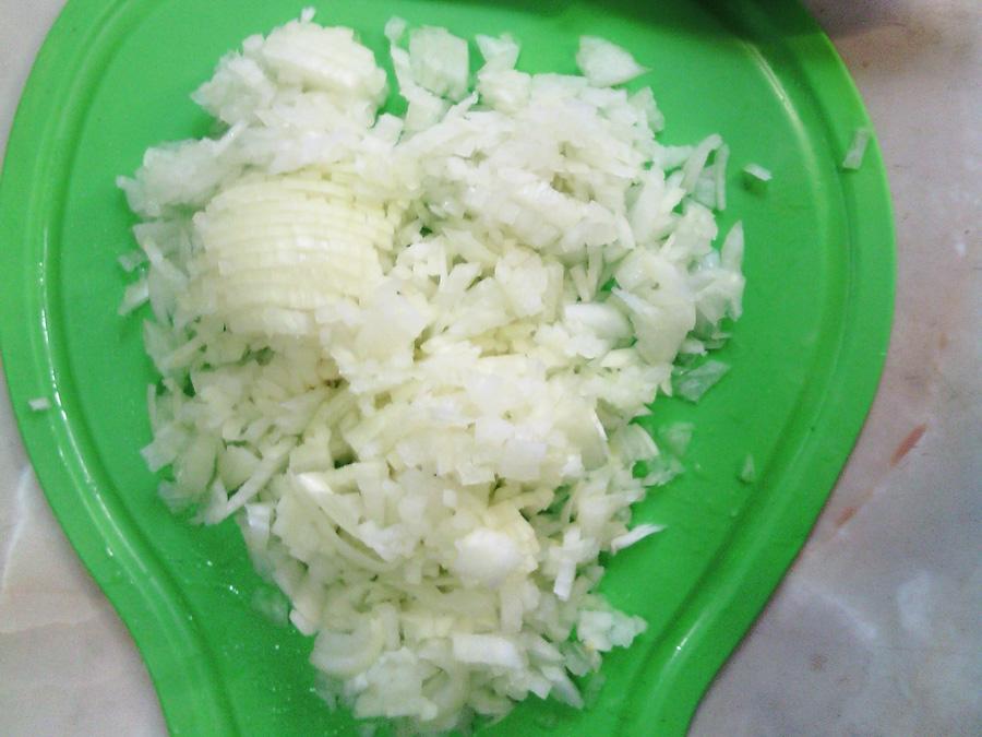 Нарязваме ситно лука.