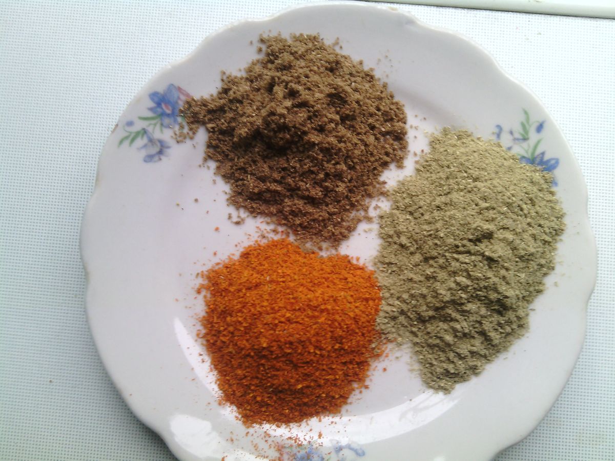 - 1 ч.л. подправки сунели: суха смляна килантро, червено цвете, utsho-suneli;