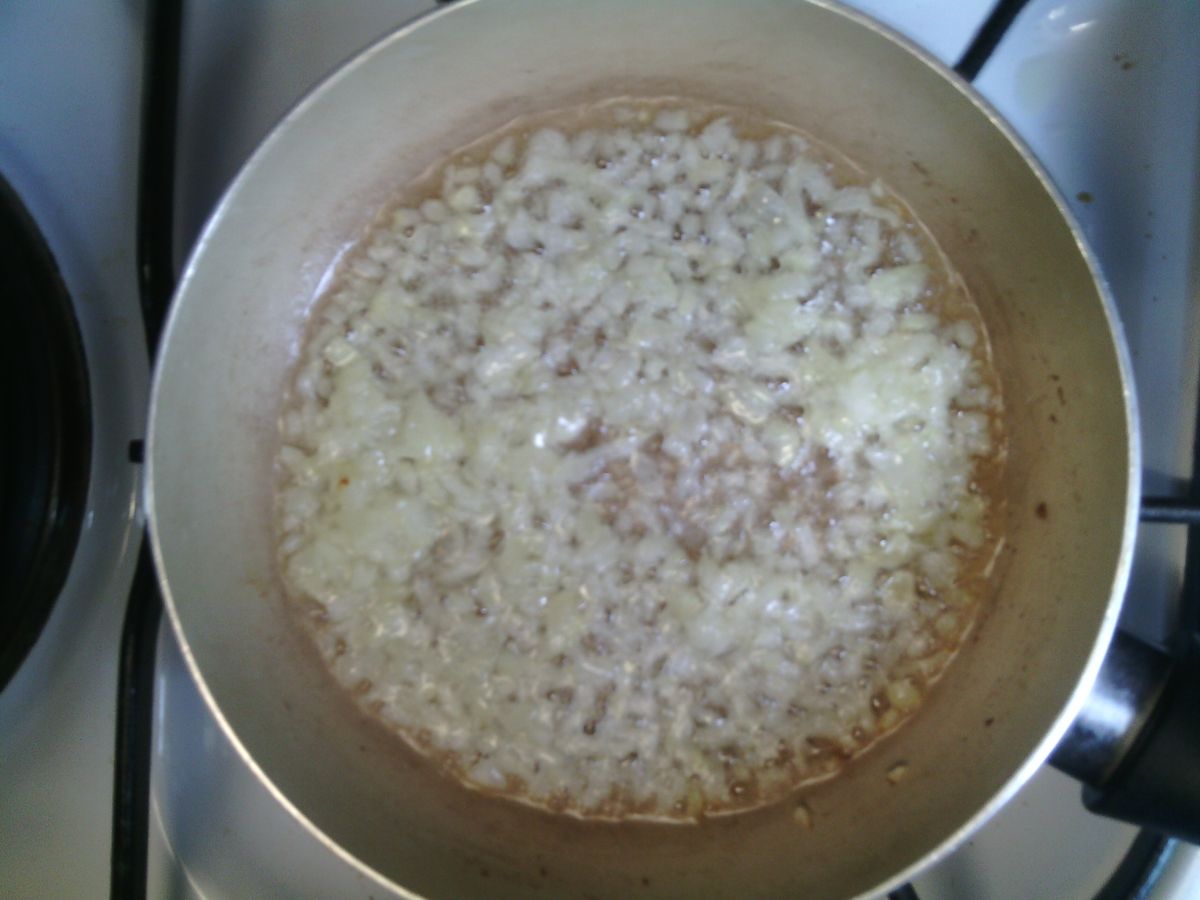 Разбъркайте добре, изстискайте чесъна там. Запържете до златисто кафяво една глава ситно нарязан лук и добавете към майонезата, разбъркайте.