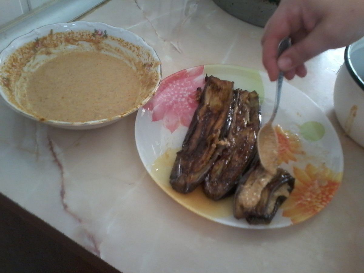 И в края на тази история за невероятното, моят приятел Алена ви предлага своята импровизация с патладжан. Може да попитате, какво е толкова необичайно тук? Но факт е, че подобна грузинска рецепта за патладжан изисква нарязани орехи. Но Алена е наполовина рускиня, затова в тази рецепта показа любовта си към майонезата, която днес ще бъде просто необходима съставка.