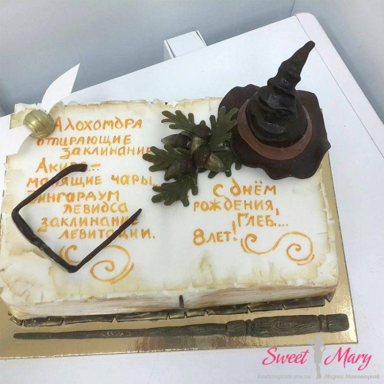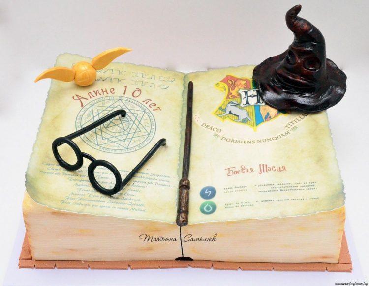 Dorty založené na knize mohou být velmi odlišné. Můžete to udělat doma, ale bylo by dobré svěřit to odborníkům. Podobné dorty mohou být běžné - kulaté a mohou ztělesňovat různé tvary. Dort Harryho Pottera může být ve formě knihy kouzel, postavy mohou být vyráběny z tmelu, postavy magické hůlky a dokonce i hradu ve stylu Bradavic.