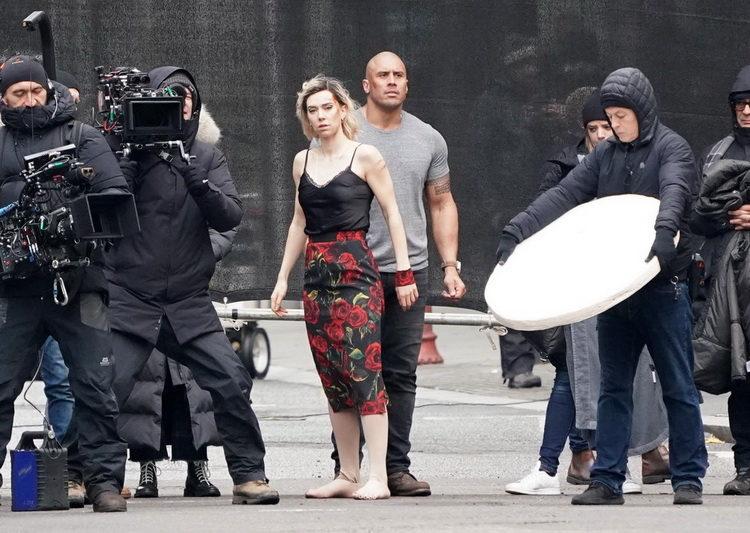 Scény pro Fast & Furious natáčené dnes v Londýně (24/11/18) s hvězdami 'Rock', Dwayne Johnson, Jason Statham a Idris Elba všichni na scéně, Elba vypadal, že má nějaké kostýmní problémy, i když v jeho kožené motorkářské oblečení kompletní se sortimentem zbraní