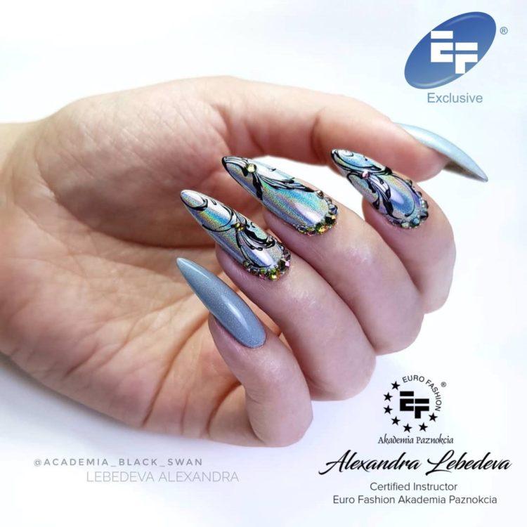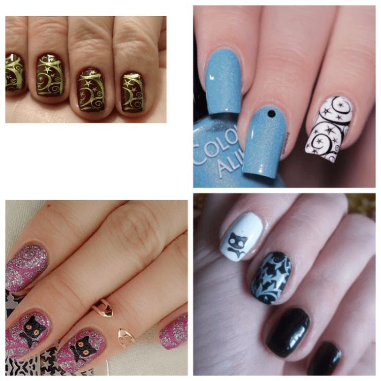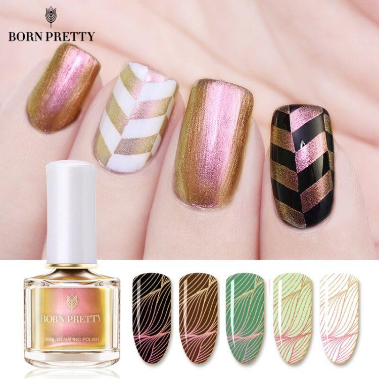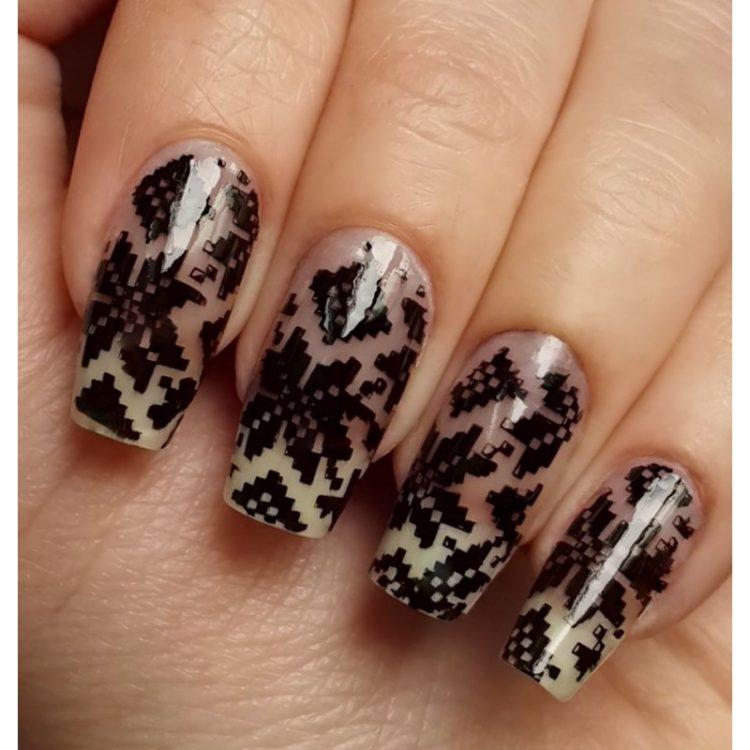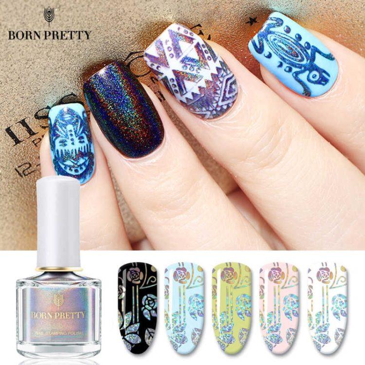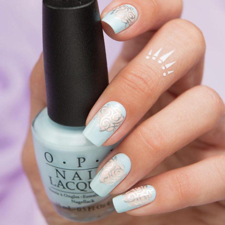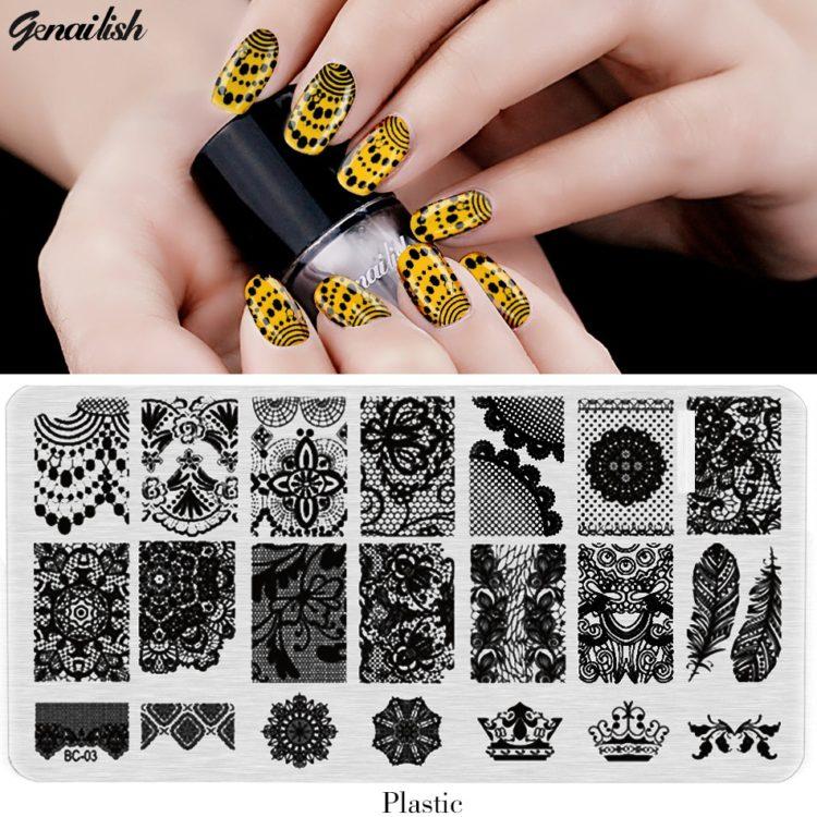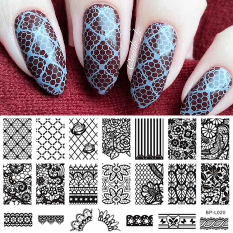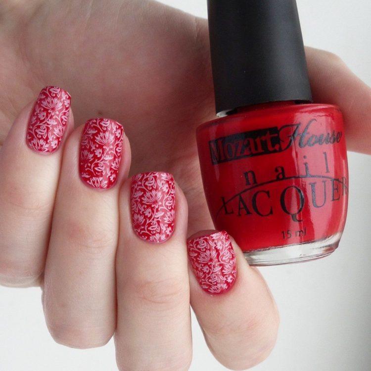 Para hacer un hermoso estampado o impresión en sus uñas, compre un kit de estampado. Se toman pintura o barniz de tres tipos diferentes en la base, el fondo principal, el revestimiento transparente superior. ¿Cómo usar un sello, sello o placas, cómo aplicar barniz de gel de estampado para hacer una hermosa manicura de estampado? Esto no es difícil: haga una manicura regular (debe secarse por completo), luego aplique una pequeña cantidad de esmalte de uñas saturado o gel con un sello de uñas, retire cuidadosamente el exceso con un raspador dibujándolo a lo largo del plano superior del sello. Presione el sello con el patrón en la placa de la uña. Para arreglarlo, cubra el estampado de manicura con barniz transparente. Tanto el sello de estampación como la pintura de estampación deben ser de alta calidad.