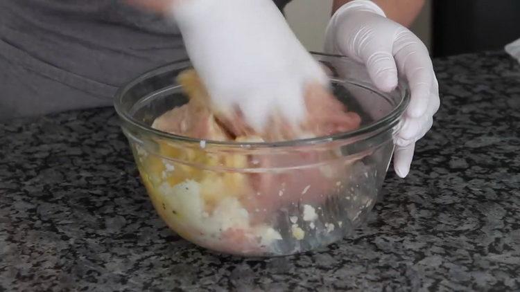 - Mélangez tous les ingrédients. Mouiller les mains dans l'eau froide. Nous formons des côtelettes.