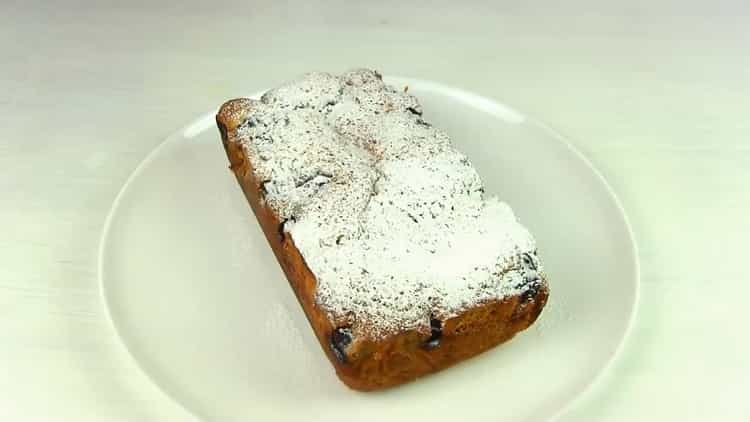 - Cuocere in forno ben riscaldato per 25-30 minuti a una temperatura di 190 ° C, quindi abbassare la temperatura a 170 ° C e cuocere per altri 15-20 minuti. 5-7 minuti prima di essere pronti a coprire la parte superiore della torta con pergamena. Rimuovere il cupcake finito dallo stampo, raffreddare a uno stato caldo, mettere su un piatto da portata e versare 2-3 cucchiai. l. zucchero a velo.