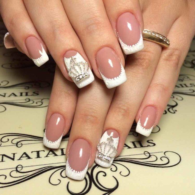 Моден френски бял маникюр е идеален за млади дами. Разглеждайки актуалните тенденции, обърнете внимание на бялото яке с горни камъни, както и на белия френски дизайн на ноктите, който предполага разтриване. Те са гарантирани да освежат вашия външен вид.