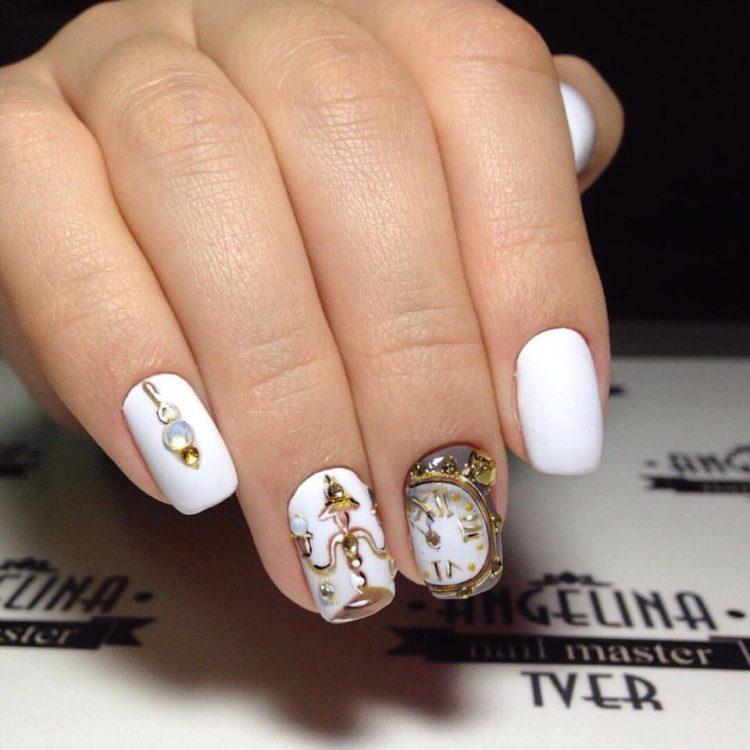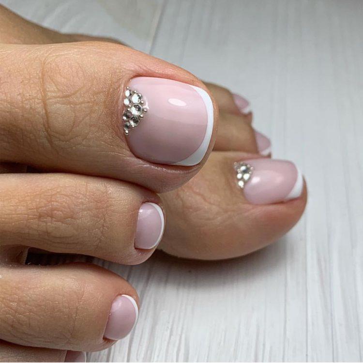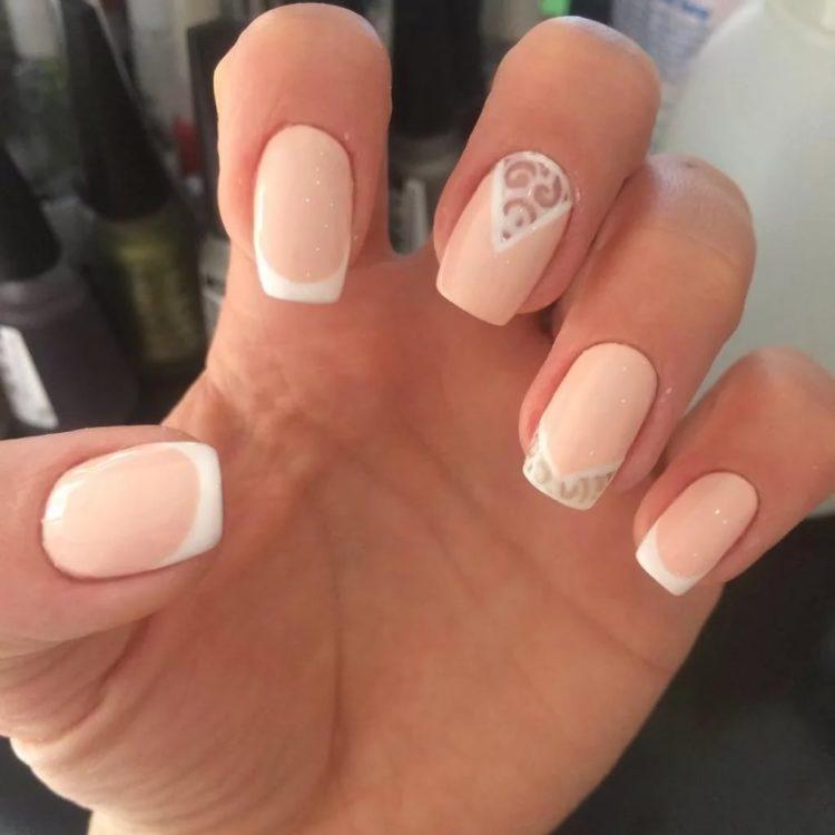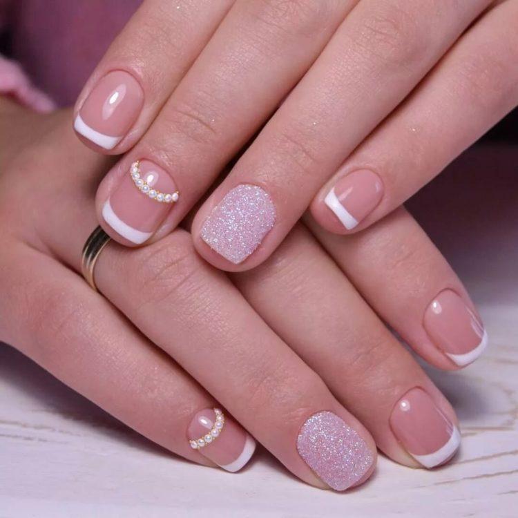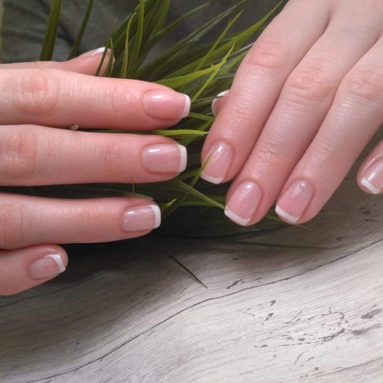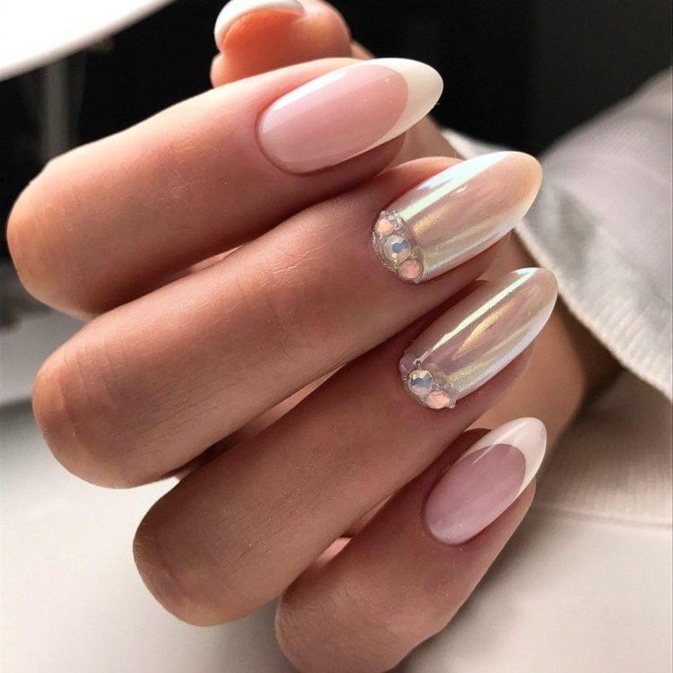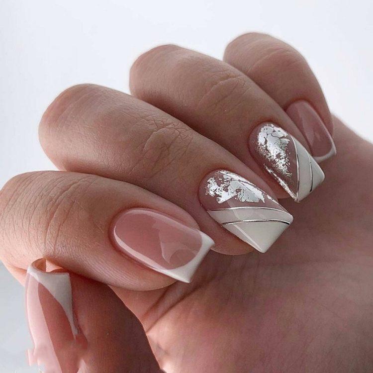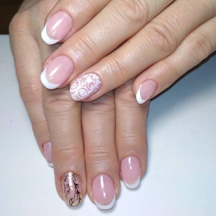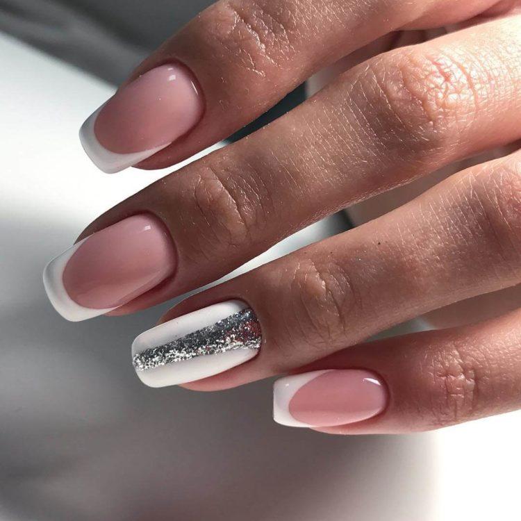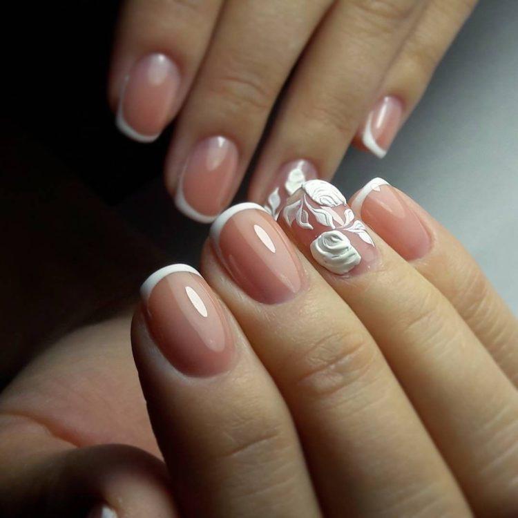 Моден френски бял маникюр е идеален за млади дами. Разглеждайки актуалните тенденции, обърнете внимание на бялото яке с горни камъни, както и на белия френски дизайн на ноктите, който предполага разтриване. Те са гарантирани да освежат вашия външен вид.