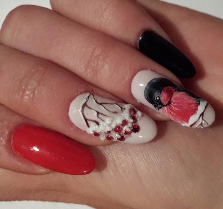Маникюр "Есен планинска пепел" (нов) или дизайн на ноктите "Планинска пепел в снега" се актуализира систематично с нови версии. По-нататък ви предлагаме да изучавате маникюр с планинска пепел и bullfinches, както и много други картини, които подчертават вашия стил.