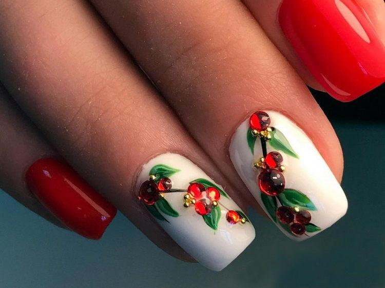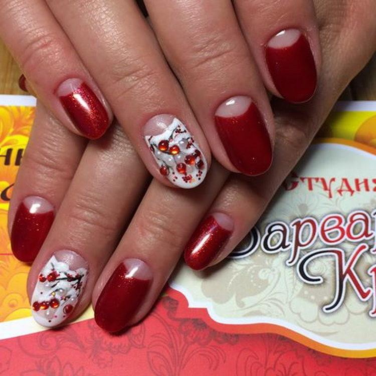 Нежен маникюр с планинска пепел от кристали е подходящ по всяко време на годината. Избирайки маникюр "Планинска пепел в снега" или "трева", не забравяйте да обърнете внимание на деликатния дизайн с кристали. По-рано отбелязахме, че маникюрът "Rowan" може да бъде създаден по най-различни начини, а в този случай стразните камъни не бяха изключение.