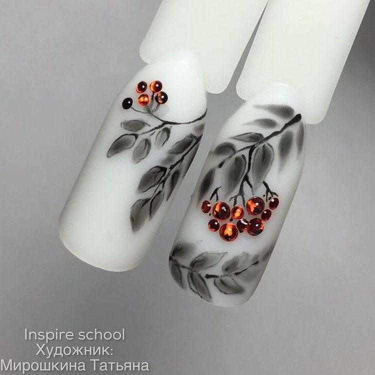 Моден маникюр с клонче планинска пепел ще подхожда на млада дама. Следващата планинска пепел на ноктите, снимка с яке и в различен дизайн ще ви помогне да изберете модерен дизайн на пръстите си. Предлагаме ви да изучите само популярния маникюр с планинска пепел, чиито снимки са представени във висока резолюция.