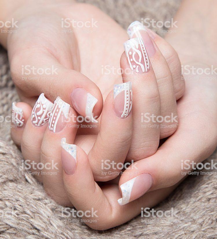 Дизайнът на ноктите „зимен“ предполага наличието на светли и тъмни нюанси. Най-често се използва гел лак, а рисунките се правят със специални бои.
