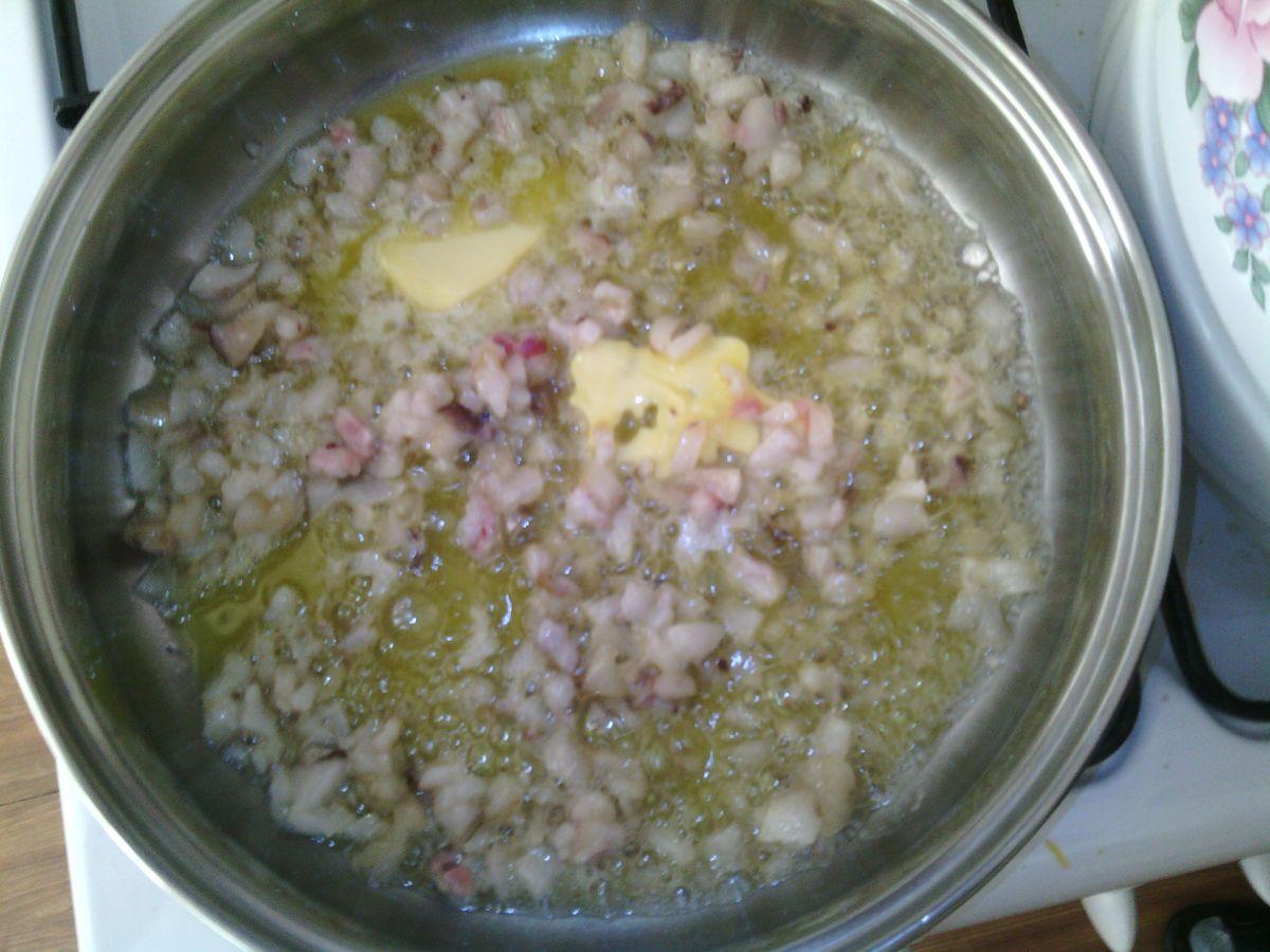 Acum tocați fin grăsimea de năut și topiți-o într-o tigaie.