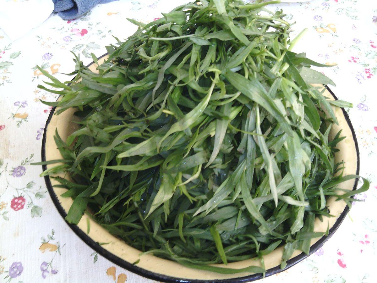 Tarragon (tarhon) ne curățăm de tulpini ferme.