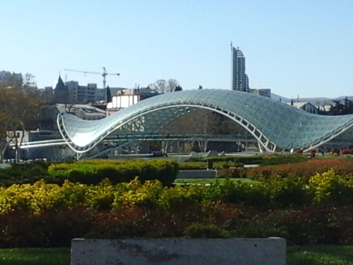 Și în mod neașteptat, o clădire ultramodernă - un pod de cristal - a fost ridicată recent în centrul acestui arhaic. De la sine, arată superb, mai ales seara, când pe întuneric arcadele sale sunt turnate de lumini LED. Dar în partea istorică! În opinia mea, pur și simplu încalcă armonia arhitecturii vechi din Georgia și nu se încadrează absolut în imaginea orașului. Așa cred mulți localnici care sunt mândri de cultura lor străveche. Podul este neuniform, ondulat simetric, curbat de un arc cu aripi la margini. Apropo, oamenii care erau bine orientați la cuvânt l-au numit imediat „Olweis”.