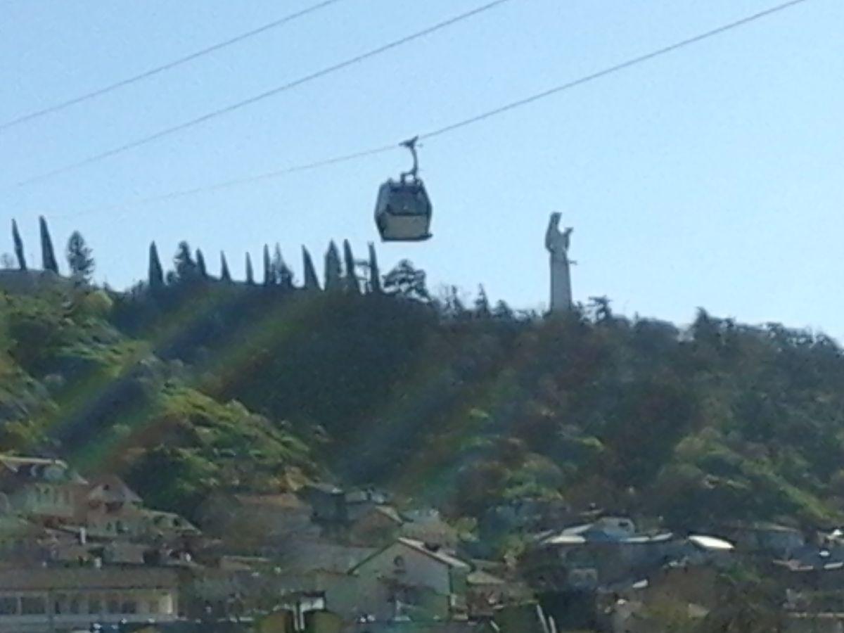 În apropiere se află telecabina, care duce sus la cetate și la imensa statuie a Maicii Georgia. Această statuie este o femeie gigantică, într-o mână are un bol cu vin, în cealaltă o sabie. Simbolizează atât ospitalitatea, cât și militanța, capacitatea de a se ridica pentru sine și pentru patria unuia. Este pur și simplu imposibil să-i faci o poză cu ea: este prea mare și în niciun caz nu se încadrează în cadru.