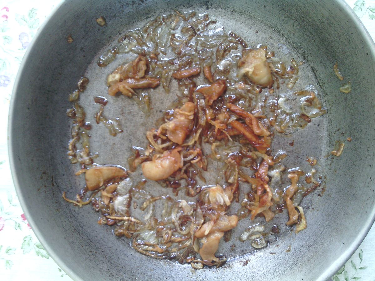 De fapt, un canah este prăjit. Vasul este de obicei gătit în ghivece, dar noi l-am făcut într-o tigaie obișnuită.