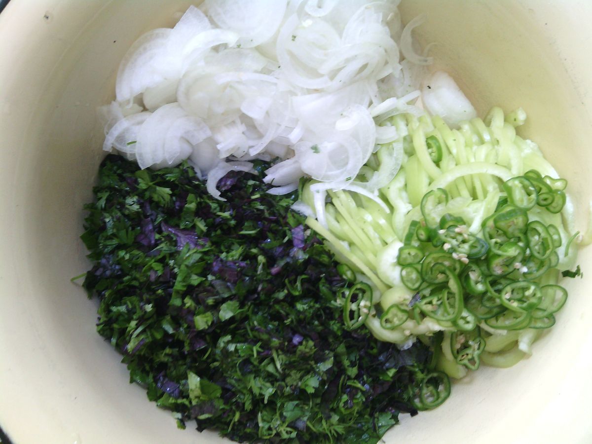 - 100 g de verzi: regan, cilantro, pătrunjel, mărar;
